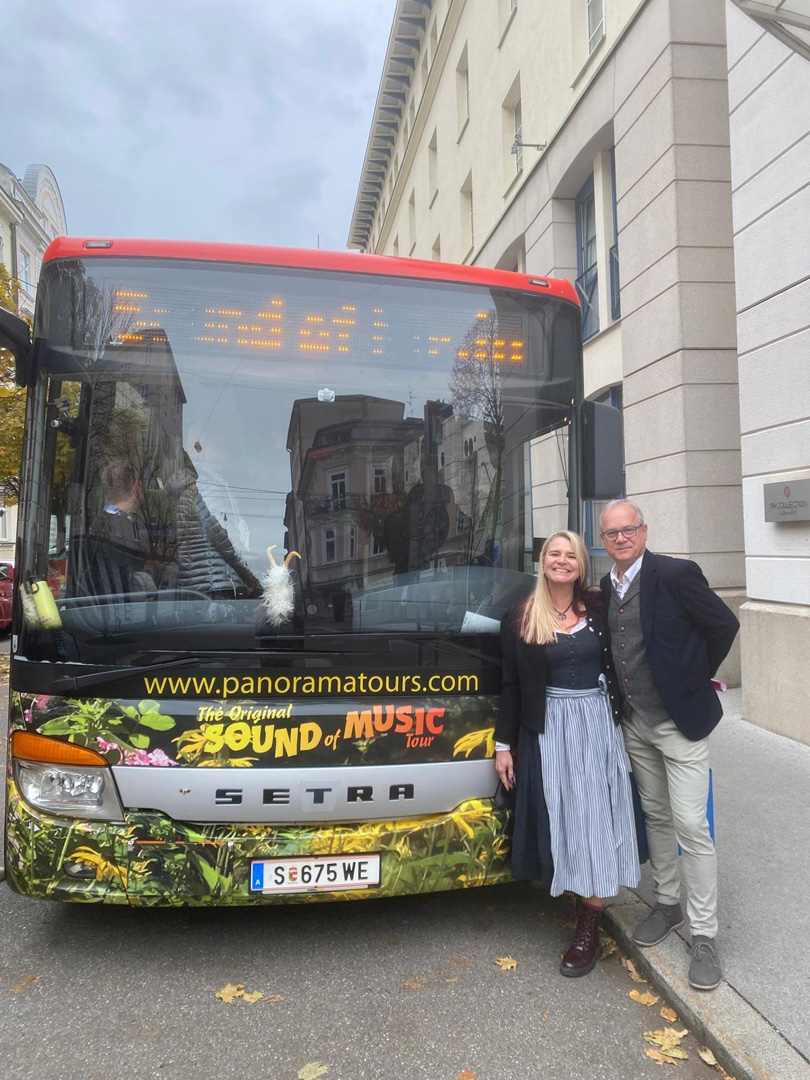 Nach der Begrüßung und Frühstück im NH Collection Salzburg City****S ging es weiter ins Schloss Leopoldskron, wo die Gäste in der stilvollen Atmosphäre des Hauses mit Prosecco empfangen wurden. Danach startete die exklusive Sound of Music Tour mit Panorama Tours – inklusive Stopp beim berühmten Pavillon in Hellbrunn und gesunden Goodie Bags von Biogena.