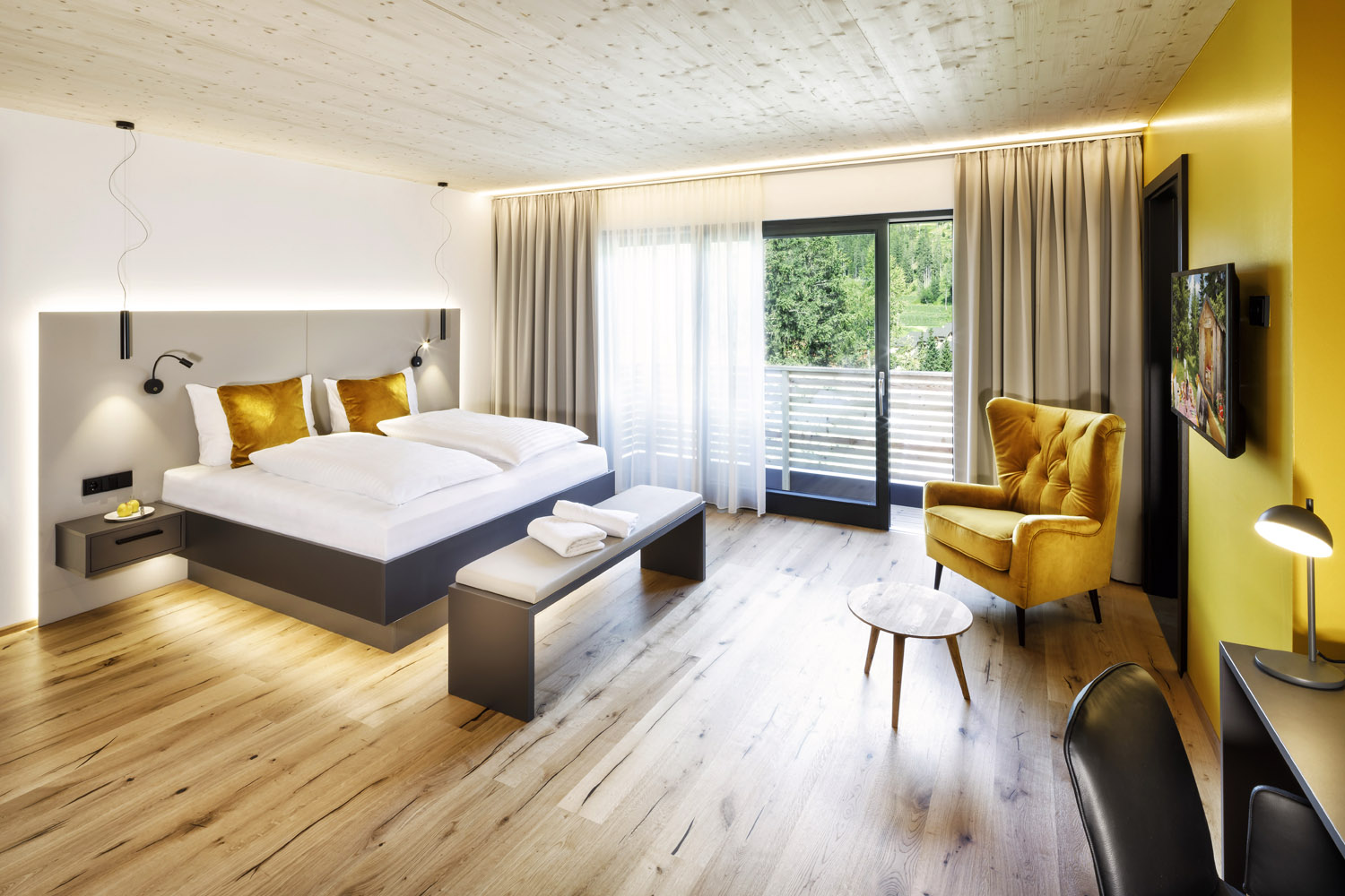 46 moderne Zimmer und Suiten mit Balkon und Blick in die Bergwelt, sowie zwei großzügigen Penthouse Suiten mit private Spa, sorgen dafür, dass sich unsere Gäste wunderbar aufgehoben fühlen. Im direkt nebenbei gelegenen Partnerhotel Lärchenhof sind weitere 49 Zimmer verfügbar.